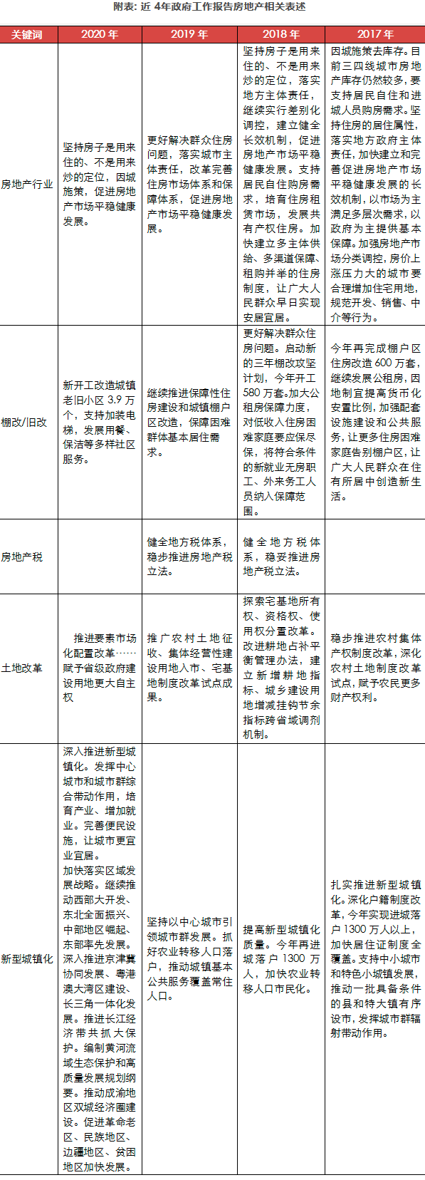 房地产行业一直作为国民经济重要产业部门,在疫情恢复、复工复产的关键时期,市场普遍对“两会”报告中房地产行业政策定调颇高关注,但此次报告中,既没有再特别强调“不把房地产作为短期刺激经济对手段”,也大大弱化了房地产相关内容的表述,整体处于一种不紧不松、不惊不喜的状态。